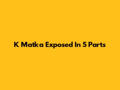 K Matka Exposed In 5 Parts