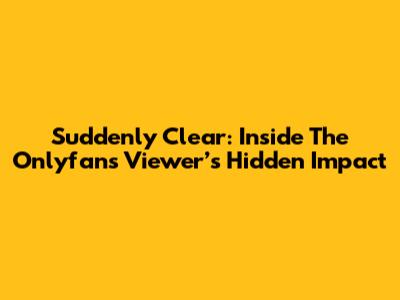 Suddenly Clear: Inside the Onlyfans Viewer’s Hidden Impact