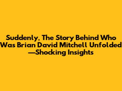 Suddenly, the Story Behind Who Was Brian David Mitchell Unfolded—Shocking Insights