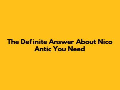 The Definite Answer About Nico Antic You Need