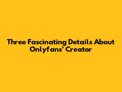 Three Fascinating Details About Onlyfans’ Creator